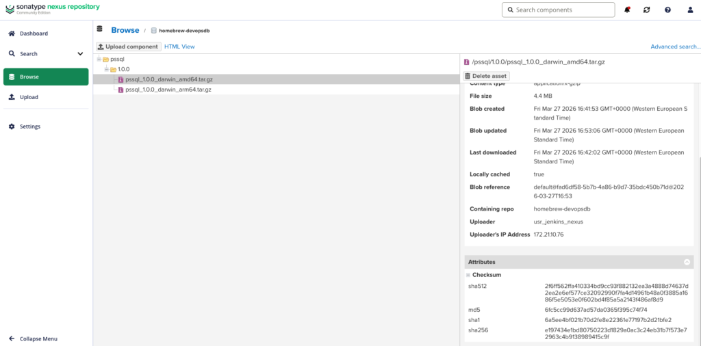 The repository is now located at: https://nexus.devops-db.internal/repository/homebrew-devopsdb/