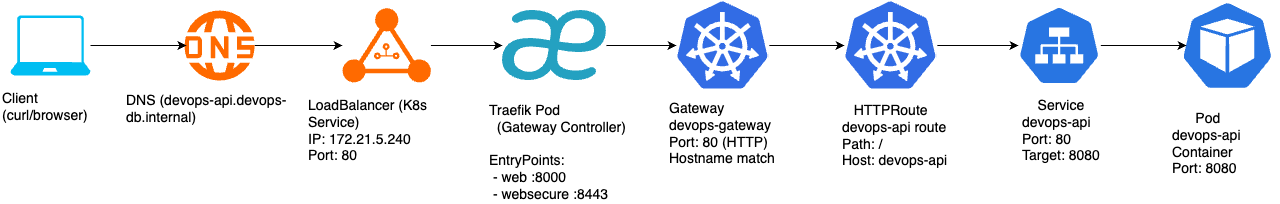 Instead of using traditional Ingress, we adopted the Kubernetes Gateway API with Traefik as the controller.