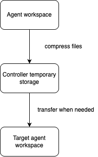 This mechanism allows pipelines to safely transfer files even if the stages execute on completely different machines.