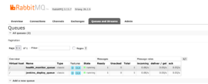 I’ll send a message first, even before starting the two consumers, so I can see the status in the RabbitMQ UI.